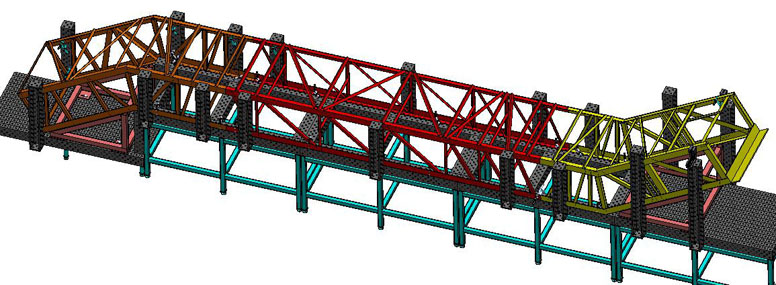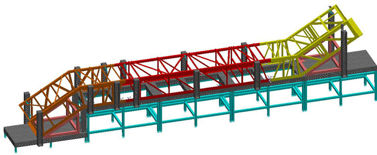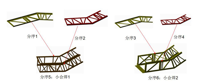 将复杂的电梯框架按焊接顺序进行分序,按前后顺序在焊接工装上进行组对拼接,并焊接完成。