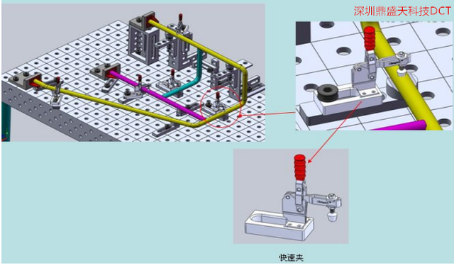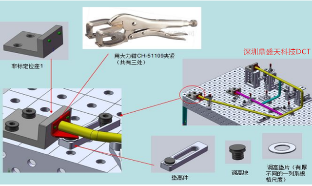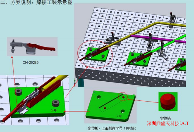当更换型号时,如下图焊接小护手,不需要设计制造新的工装,只需要一张2400X1200X200 铸件平台以及部分附件就可以直接进行焊接;