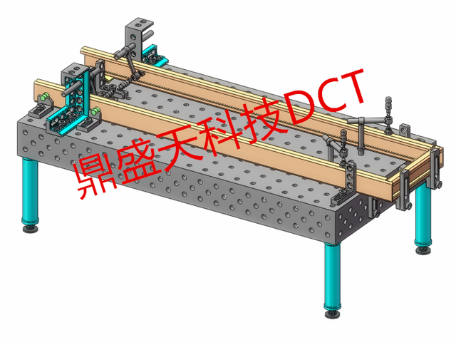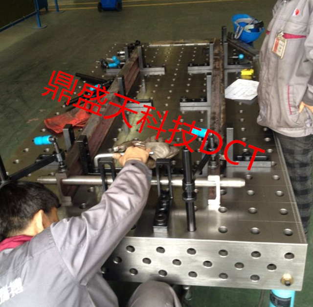 首先根据叉车门架的长宽高及重量进行测算,使用对应适合的柔性平台作为基础定位平台,保证平面精度,与简易专用工装比较,经过精加工的柔性平台能够更加长期的保证平面的精度为生产产品提供保障。