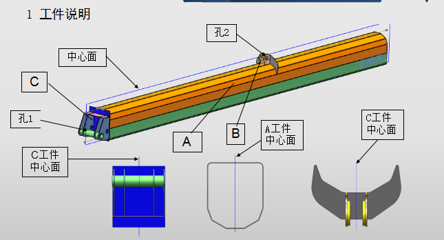 1. A,B,C三个零件的中心面必须重合在一起,