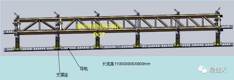 轨道总长为12000mm,单边由4条轨道组成,每条长为3000mm,中间距离880mm